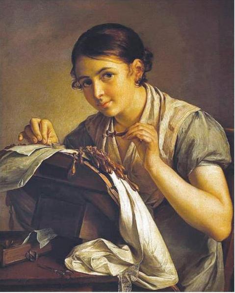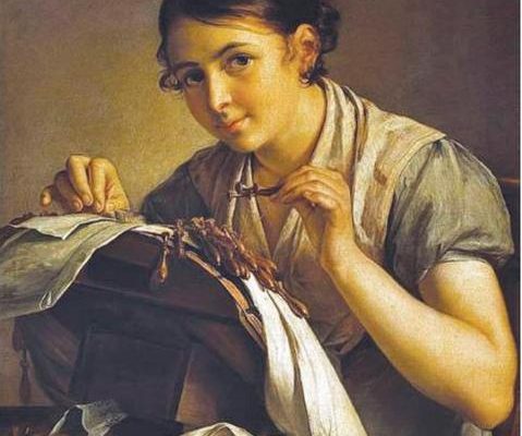 Особенность их – в том, что художник, человек крепостной, получивший вольную уже после сорока, хорошо знал, что значит тяжелый труд без возможности выбора. Занятия крепостных женщин – золотошвеек, кружевниц, в отличие от дворовых работ и труда в поле, могут показаться нам не такими уж и тяжелыми. В любом случае, те прекрасные образы кисти Тропинина, которые мы сейчас имеем счастье лицезреть во множестве русских музеев, не кажутся нам ни печальными, ни несчастными.